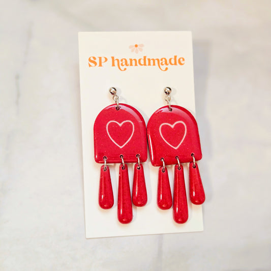 Red Glitter Heart Dangles | Polymer Clay Earrings